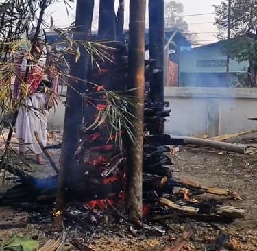A unique feature of Magh Bihu is the lighting of Meji and Bhelaghar—structures made of bamboo, straw, wood and leaves. On the morning of Bihu, (This year on January 14, 2026 ) people offer prayers to the Meji, seeking blessings for prosperity and well-being, before lighting it as a symbol of letting go of the old and welcoming new hopes.